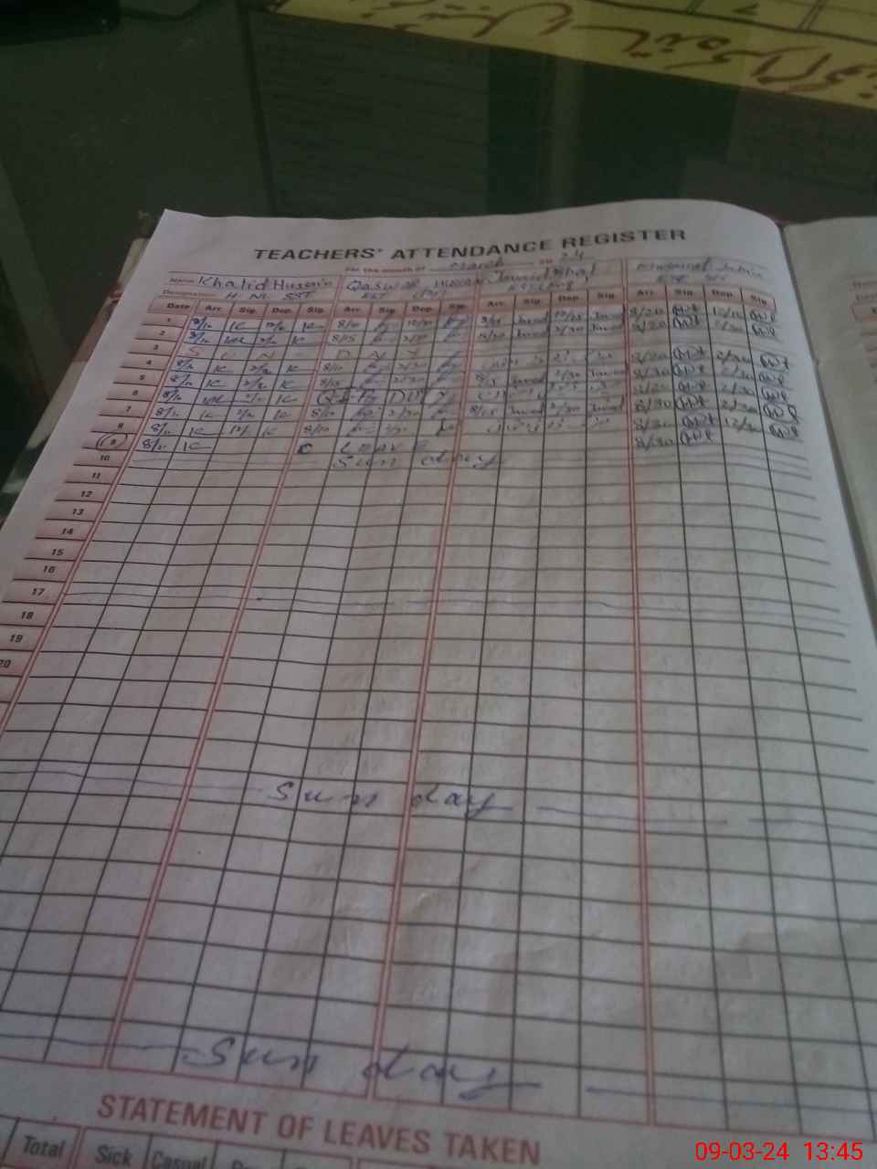 | CNIC | Full Name | Designation | R/C | Absence During Last Calender Month |