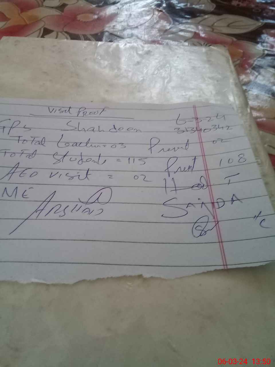 | EMIS Code: 31340342 | Name of School: GPS SHAH DIN | |||
