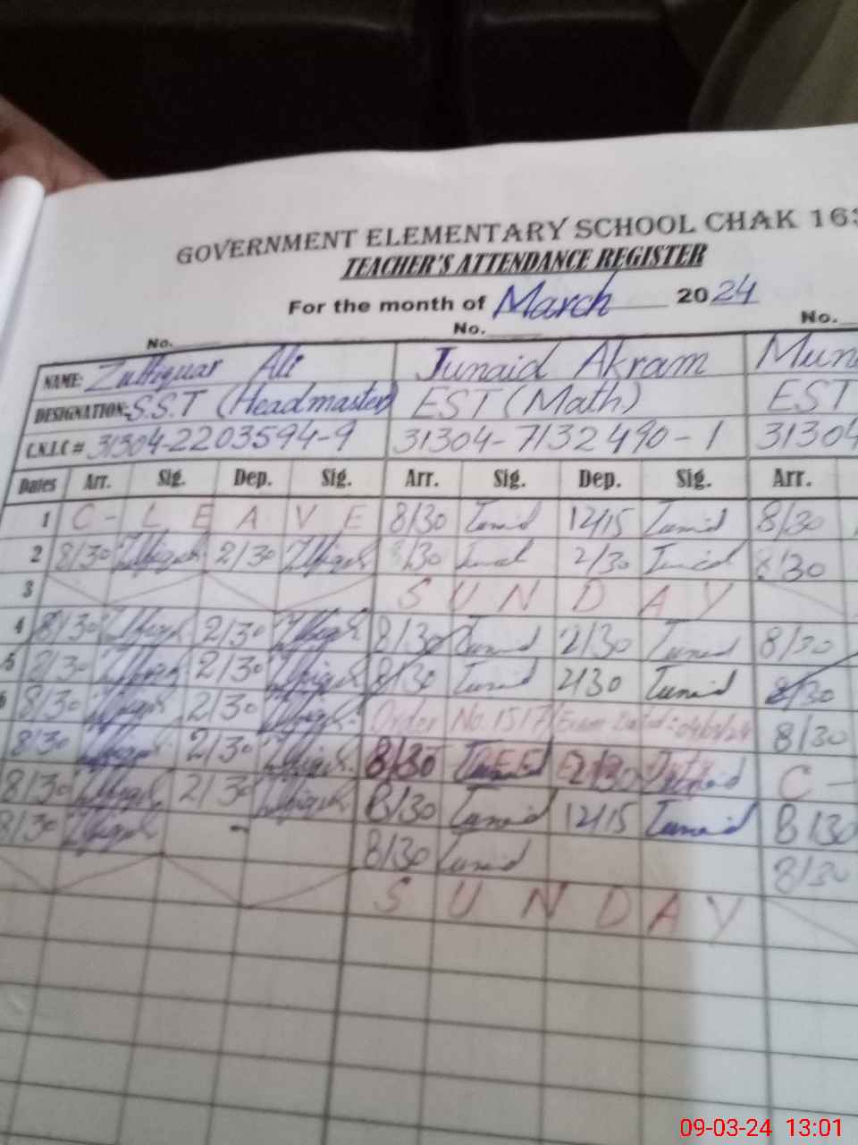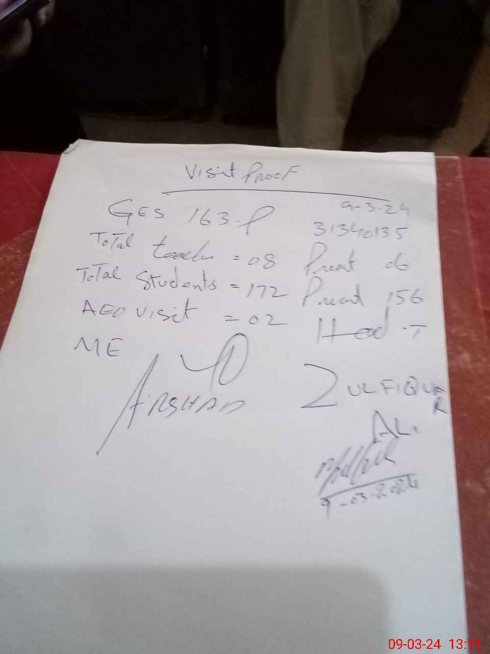 | Name: Zu**** Al**** Designation: (School Headmaster's/Headmistress's) SST Phone/Cell Number: 03**** |