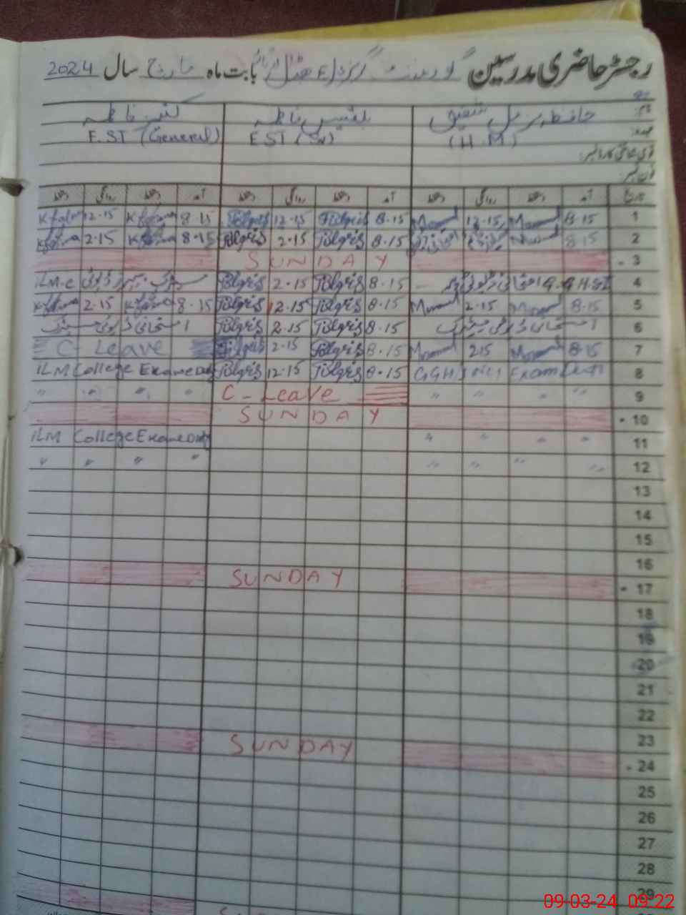 | 35**** | Ha**** Mu**** Sh**** | 6 | 2 | 0 | 0 | 0 | 0 | 0 | 0 | 0 | 0 | 0 | Exam Duty |