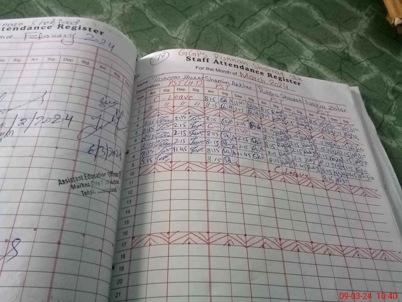 | CNIC | Full Name | Designation | R/C | Absence During Last Calender Month |