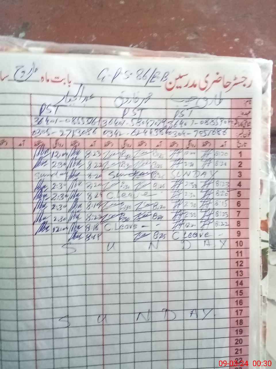 | CNIC | Full Name | Designation | R/C | Absence During Last Calender Month |