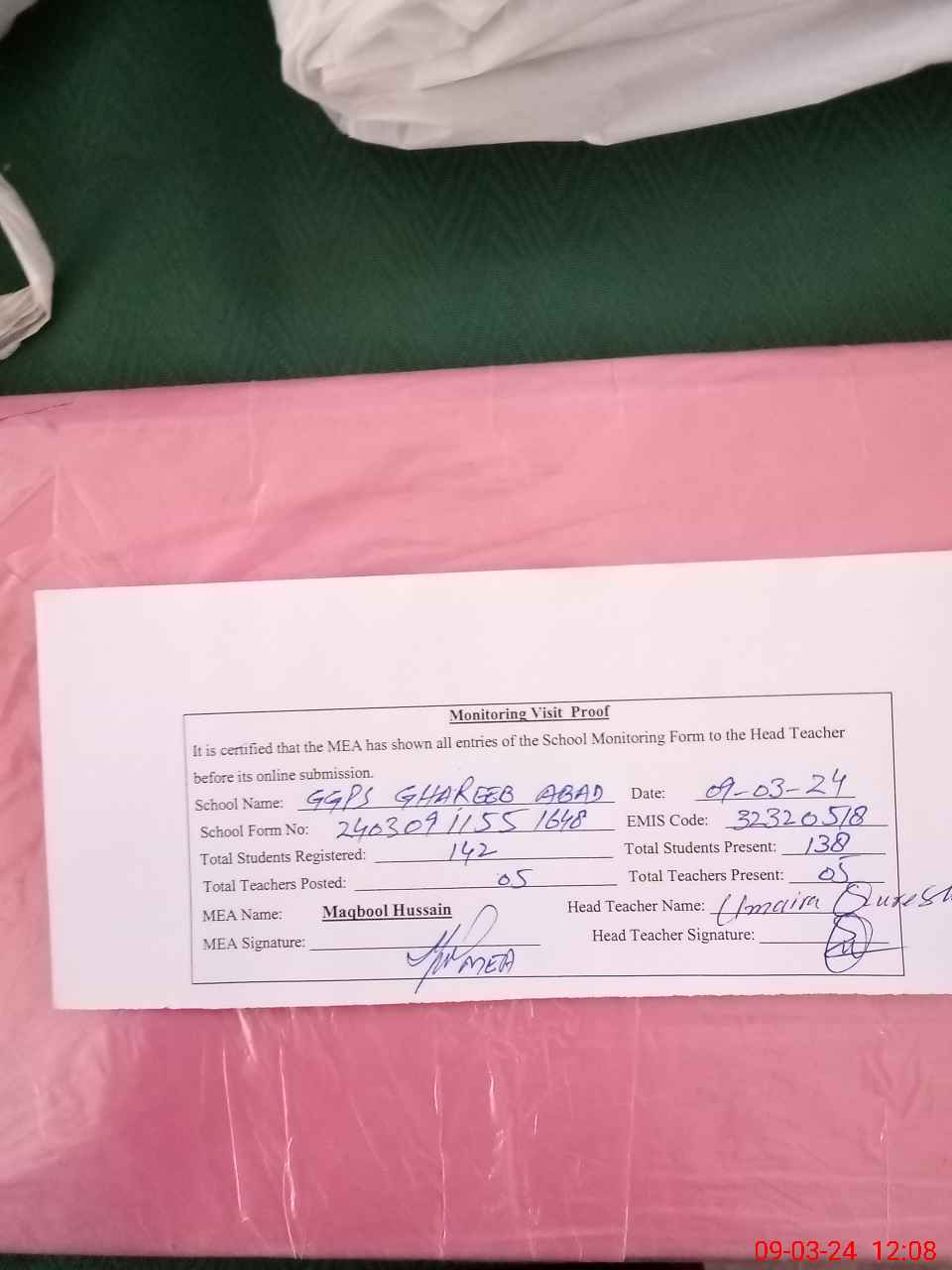 | EMIS Code: 32320518 | Name of School: GGPS GHAREEB ABAD | |||
