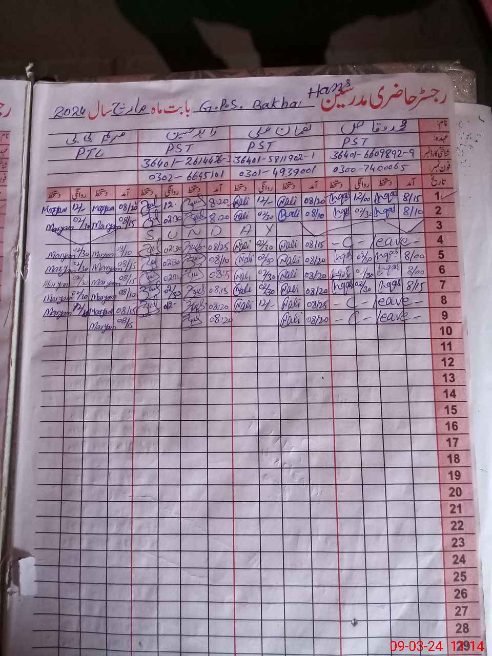 | Name: MU**** WA**** Designation: (School Headmaster's/Headmistress's) PST Phone/Cell Number: 03**** |