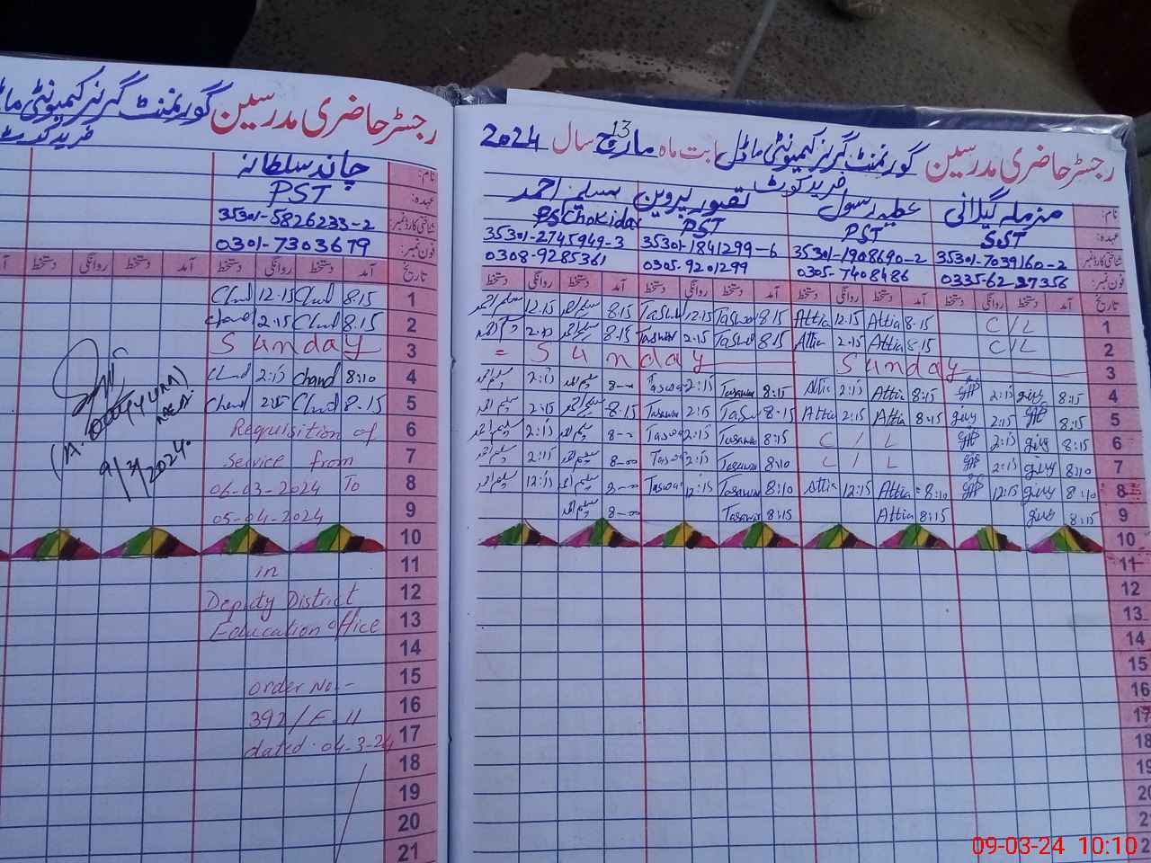 | Name: MU**** GI**** Designation: (School Headmaster's/Headmistress's) S.S.T.(SC) Phone/Cell Number: 03**** |