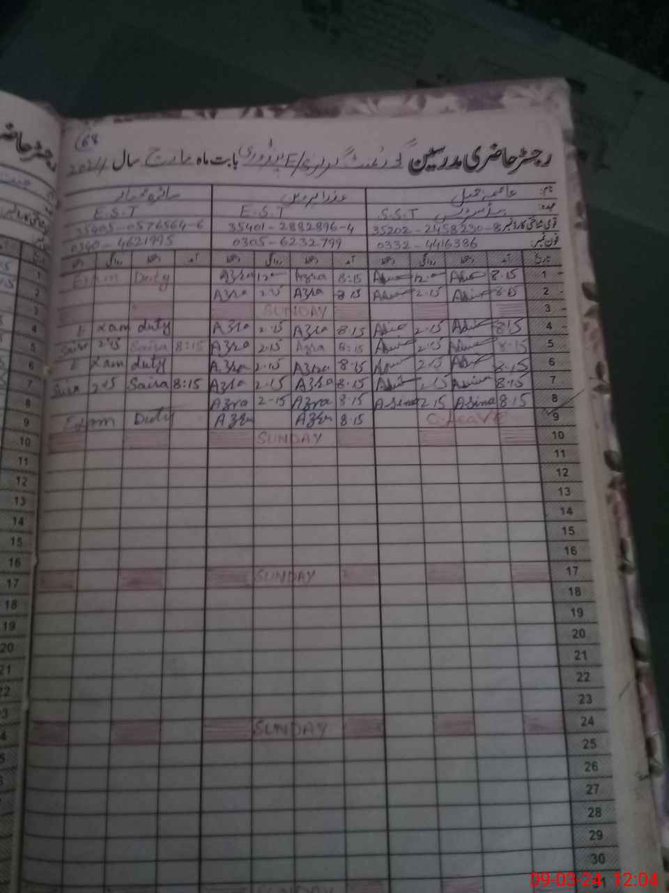 | 35**** | Sa**** Mu**** | EST | Regular | 0 | 0 | 0 | 0 | 0 | 0 | 0 | 0 | 0 | Exam Duty |