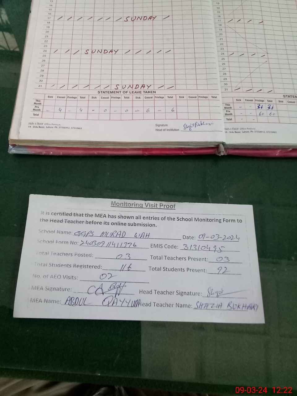 | EMIS Code: 31310495 | Name of School: GGPS MURAD WAH | |||