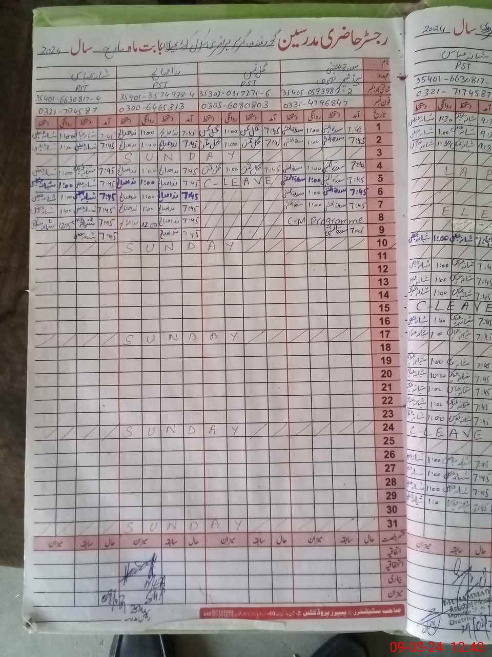 | CNIC | Full Name | Designation | R/C | Absence During Last Calender Month |