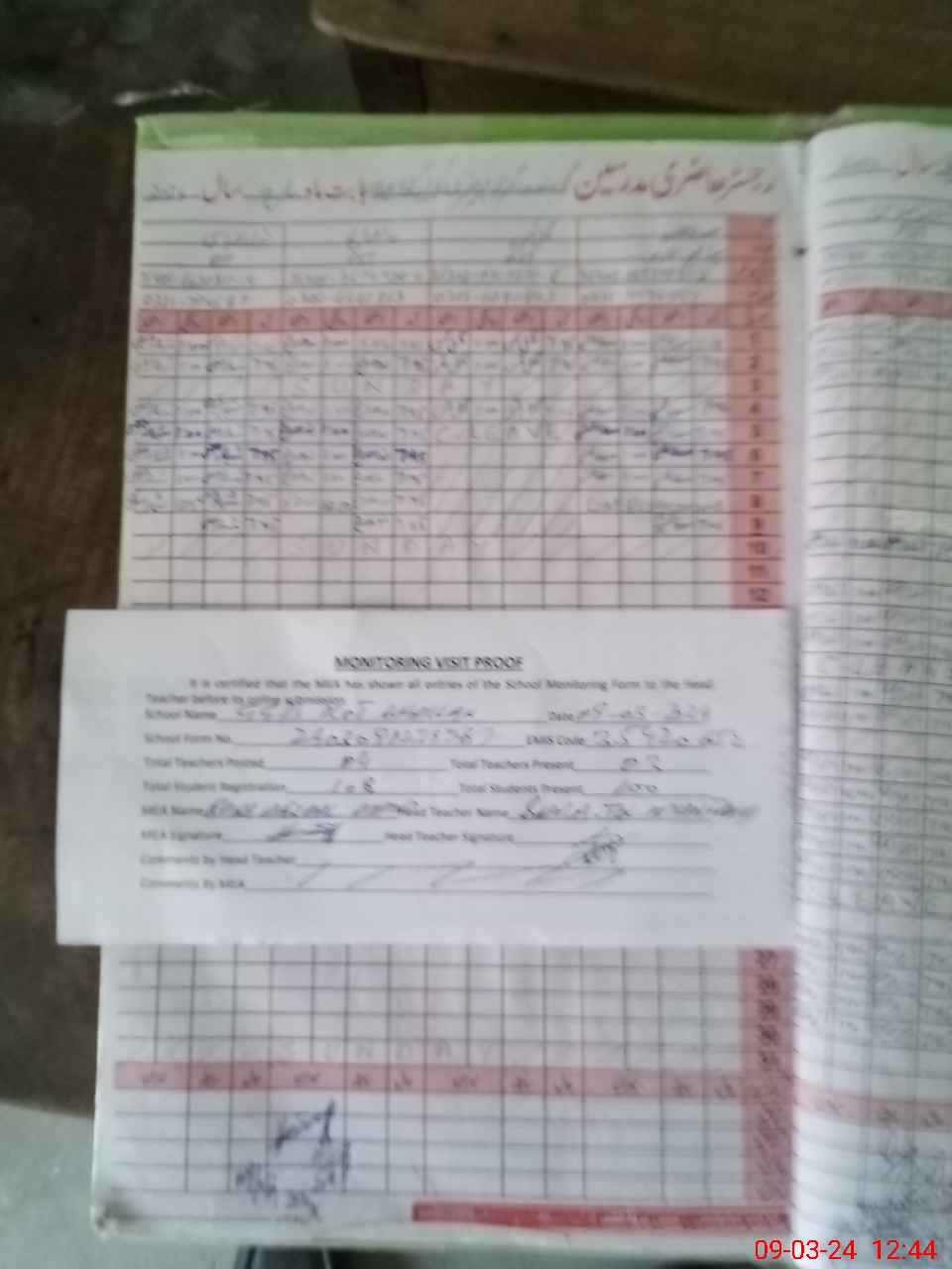 | Attendance Register | Head Teacher | MEA with School | Visit Proof |
