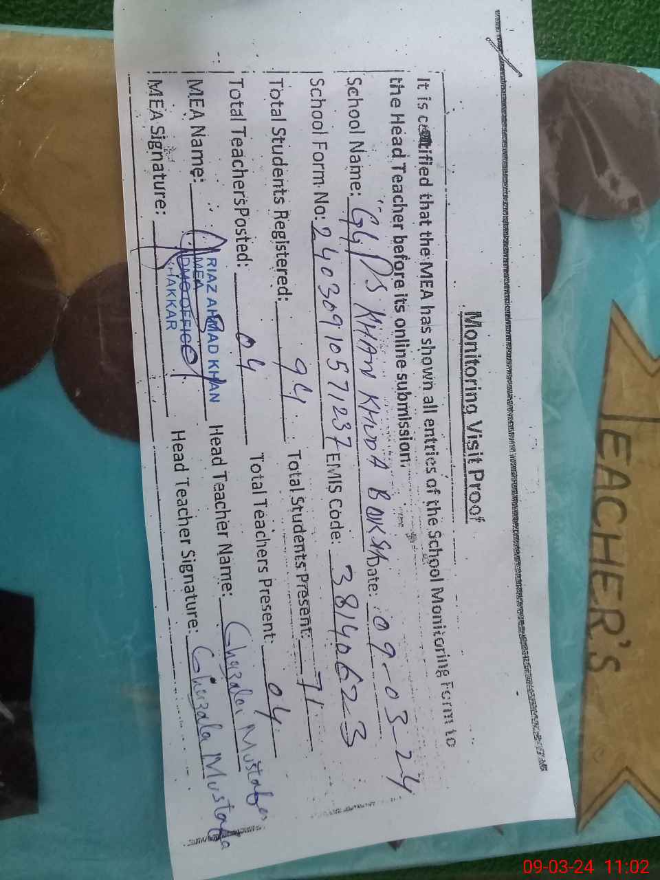 | EMIS Code: 38140623 | Name of School: GGPS KHAN KHUDA BUKHSH | |||