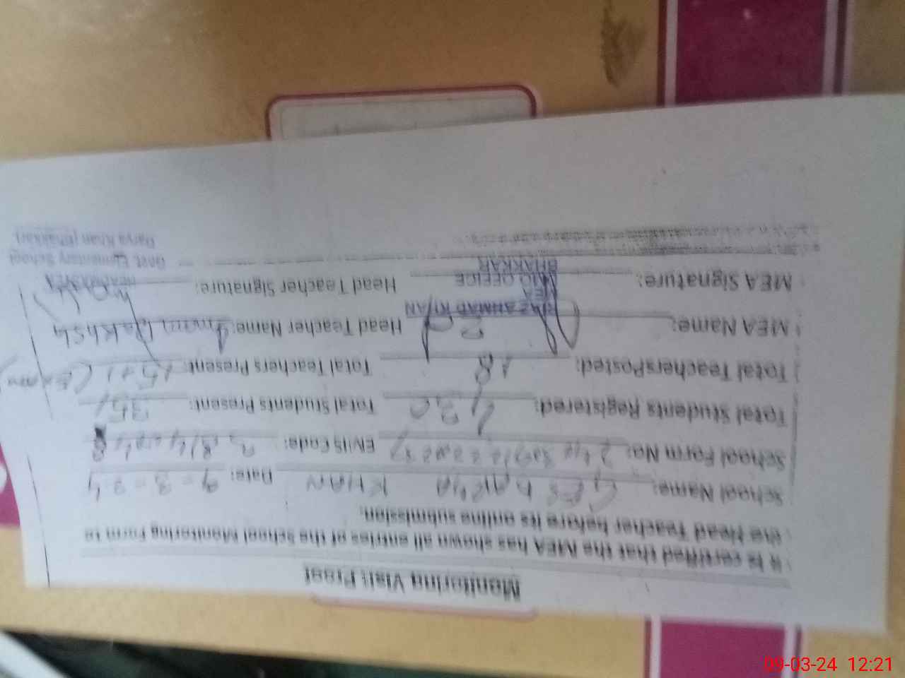 | Name: Ma**** Im**** Ba**** Designation: (School Headmaster's/Headmistress's) S.S.T.(Arts) Phone/Cell Number: 03**** |