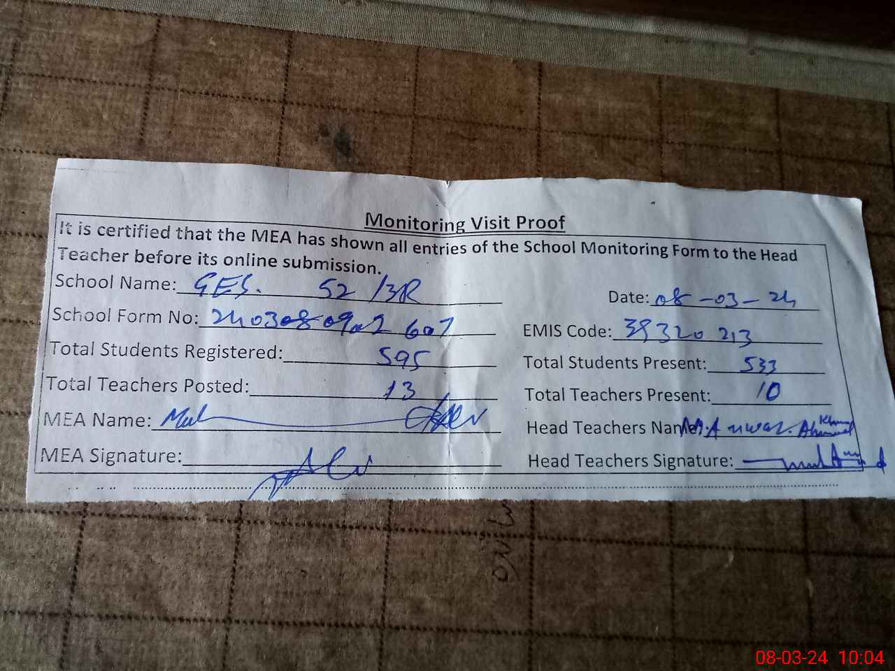 | EMIS Code: 39320213 | Name of School: GES CHAK 52/3-R | |||