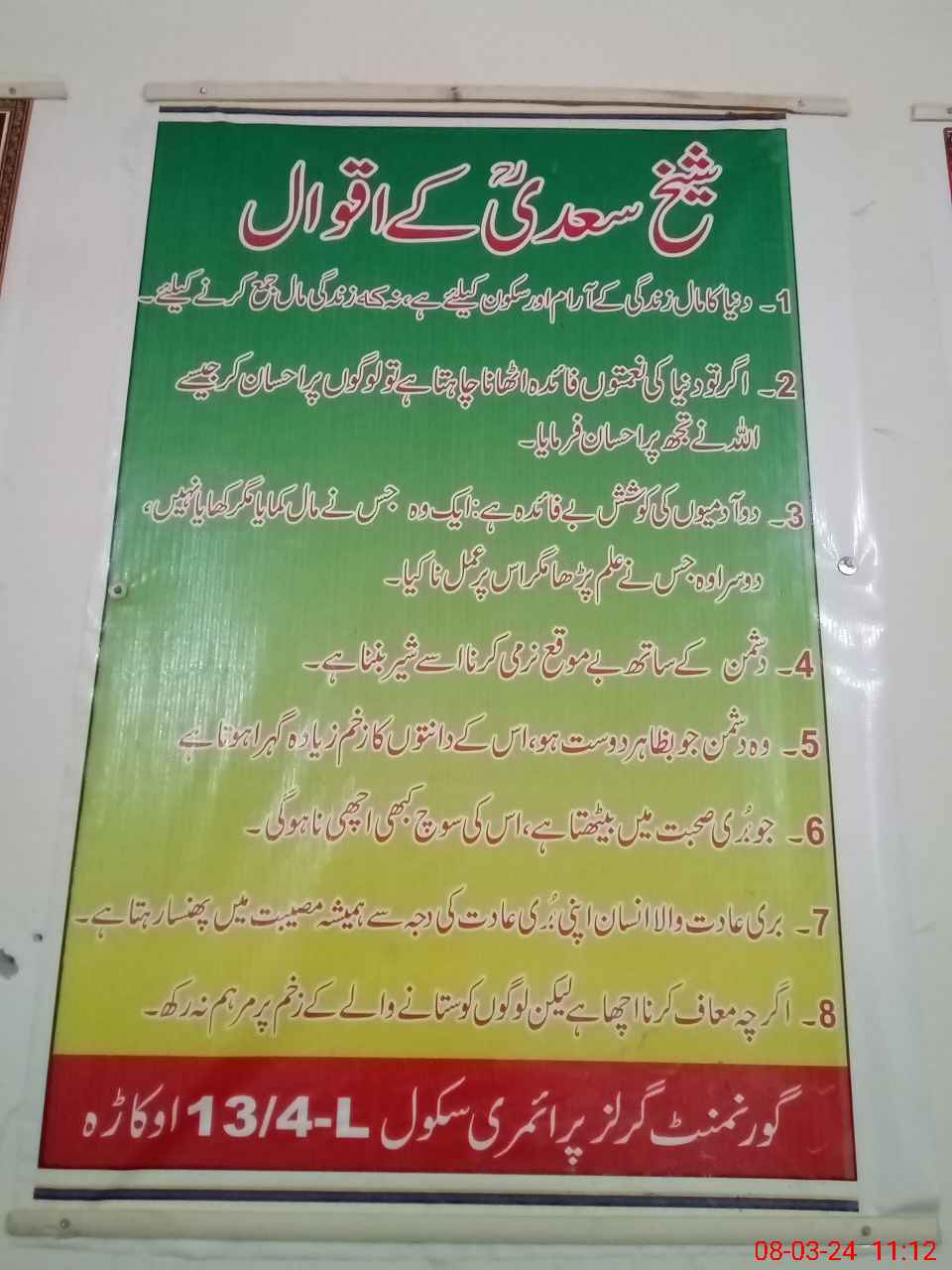 | District: OKARA | Tehsil: OKARA | Markaz: TABROOQ - FEMALE | Level: Primary | |
