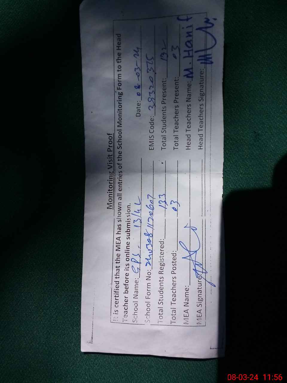 | EMIS Code: 39320375 | Name of School: GPS CHAK 13/4-L | |||