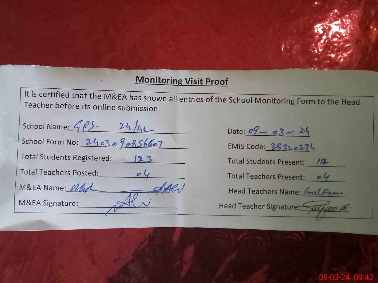 | EMIS Code: 39320274 | Name of School: GPS CHAK 24/4-L | |||