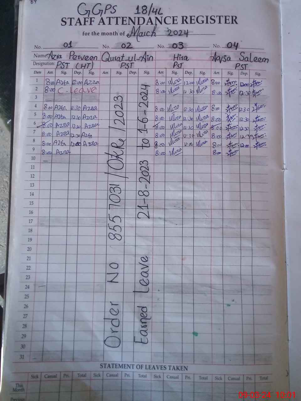| Name: Hi**** Designation: (School Headmaster's/Headmistress's) PST Phone/Cell Number: 03**** |