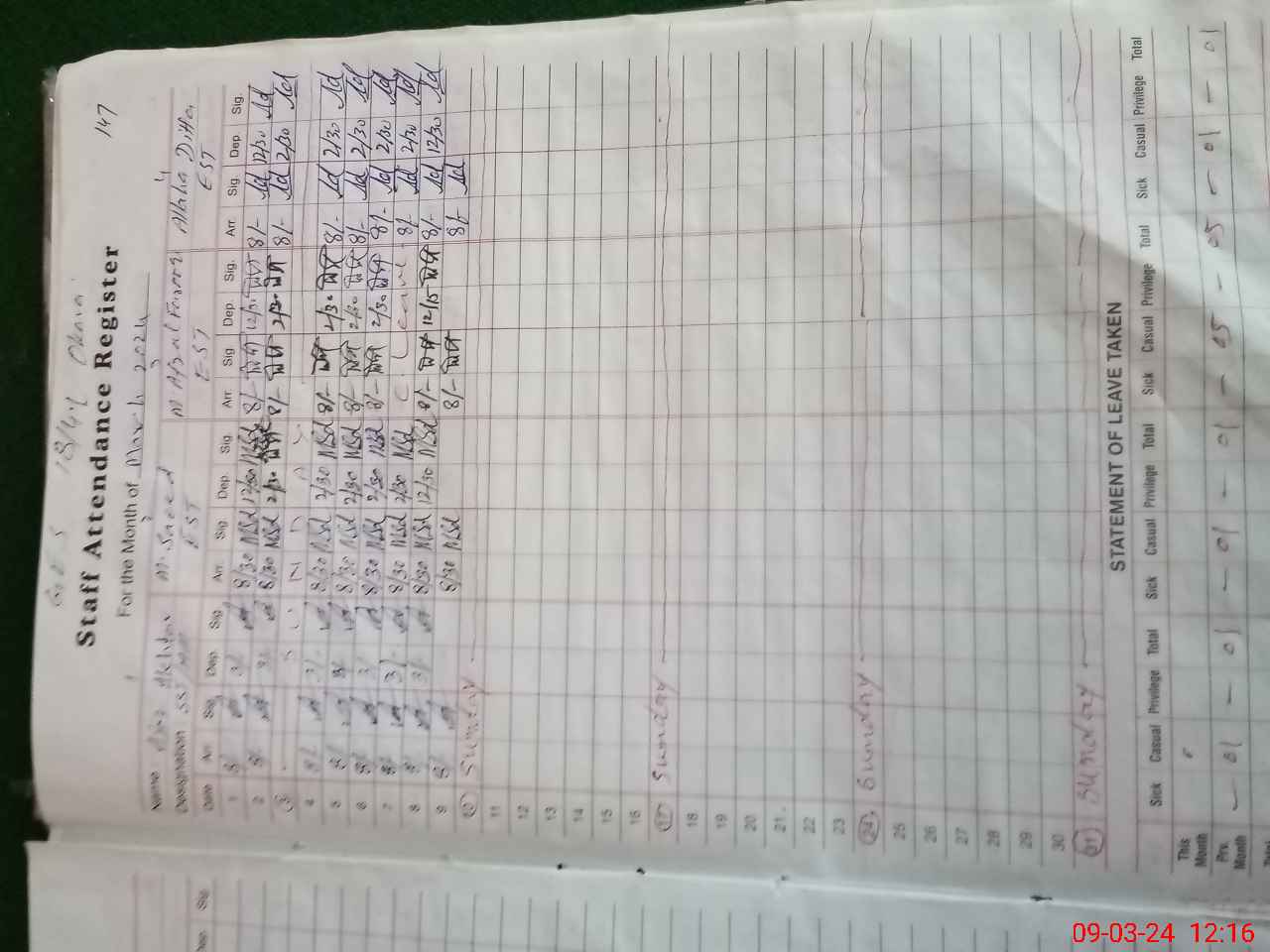 | Leave | Duty | Absent | Maternity | Medical | Ex- Pak |