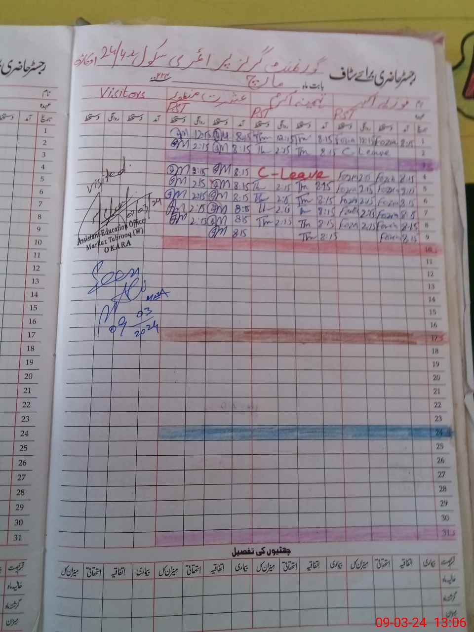| District: OKARA | Tehsil: OKARA | Markaz: TABROOQ - FEMALE | Level: Primary | |