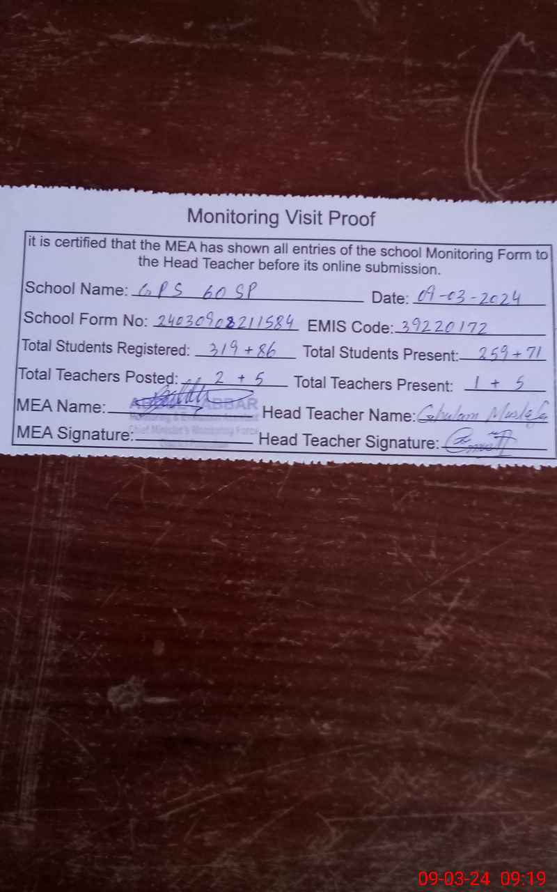 | EMIS Code: 39220172 | Name of School: GPS 60 SP POST OFFICE MALKA HANS | |||