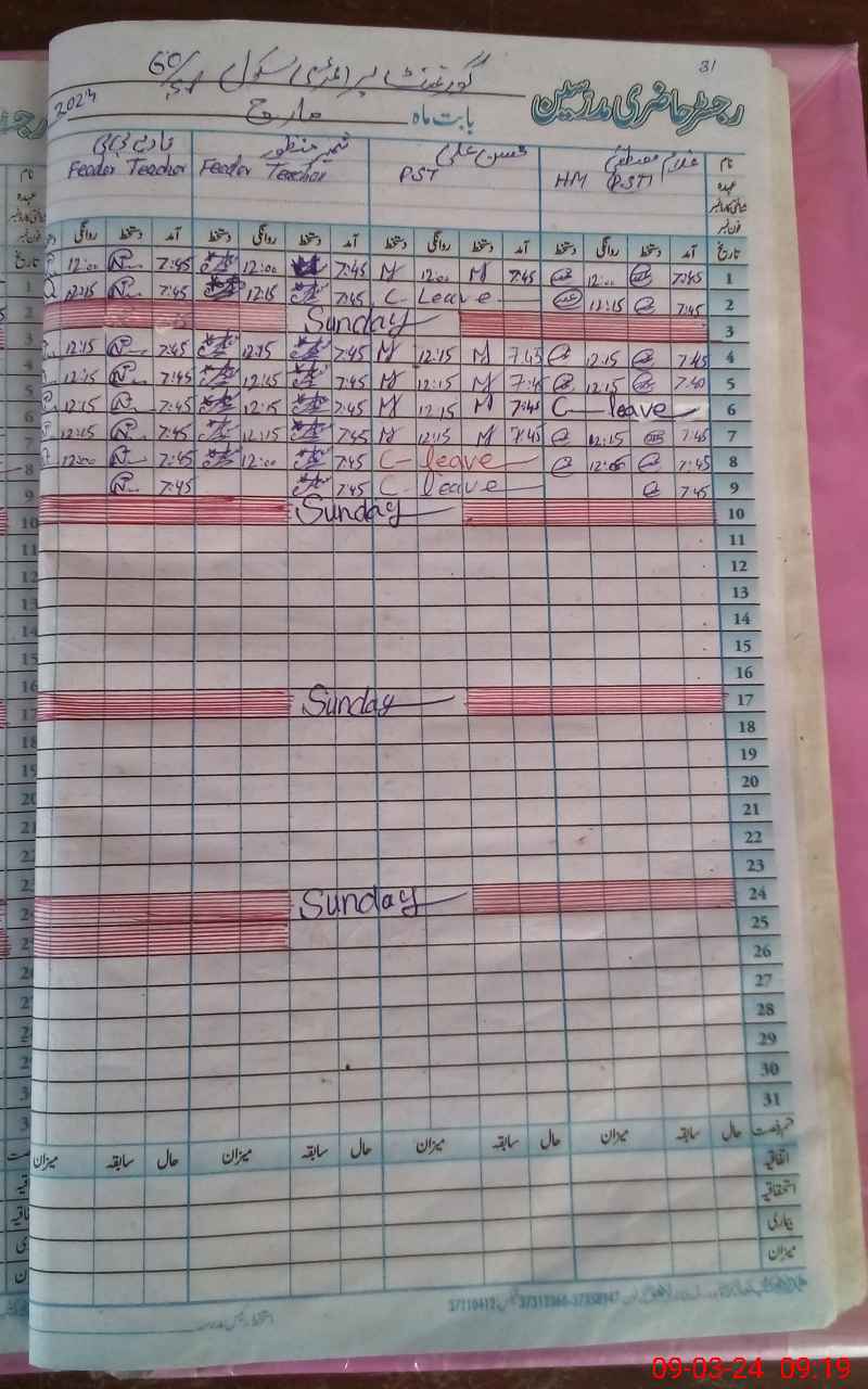 | CNIC | Full Name | Designation | R/C | Absence During Last Calender Month |