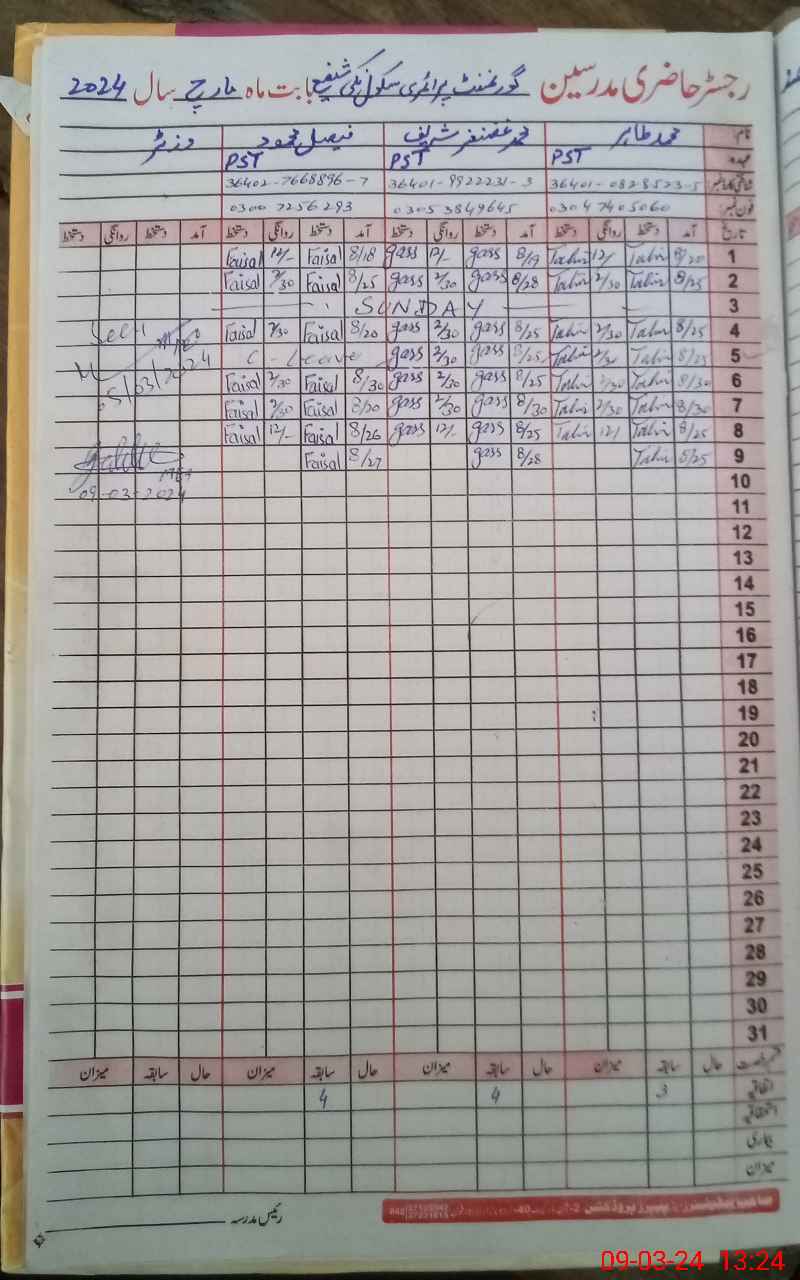 | Name: MU**** TA**** Designation: (School Headmaster's/Headmistress's) PST Phone/Cell Number: 03**** |