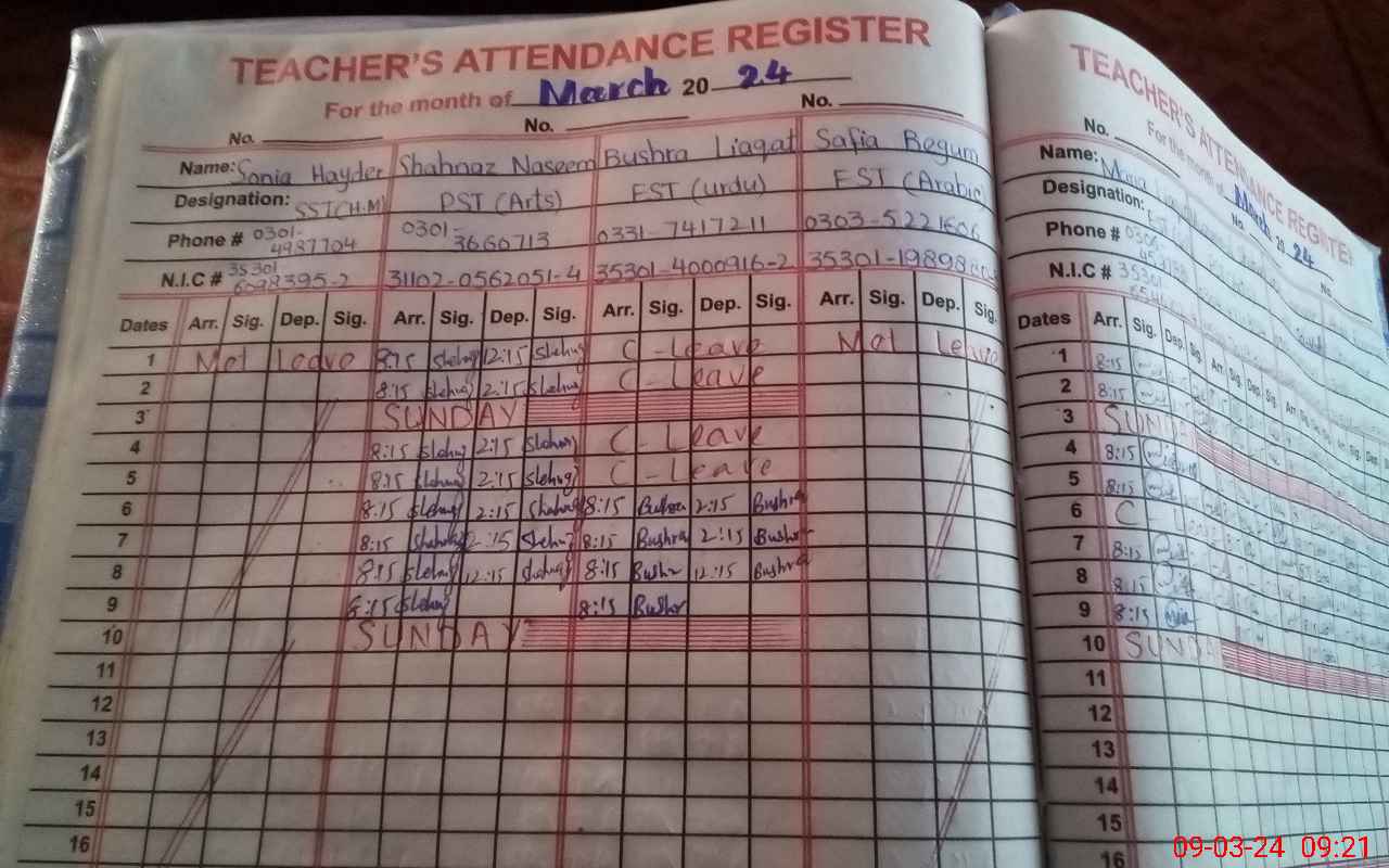 | CNIC | Full Name | Designation | R/C | Absence During Last Calender Month |