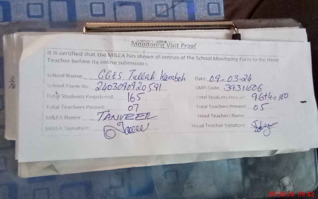 | EMIS Code: 39311006 | Name of School: GGES TULLAH KAMBOH | |||