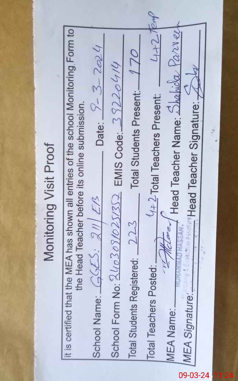| Certified that this School was Inspected by the Undersigned MEA/DMO Today and the Information Stated Above is as Per Record. | |||||