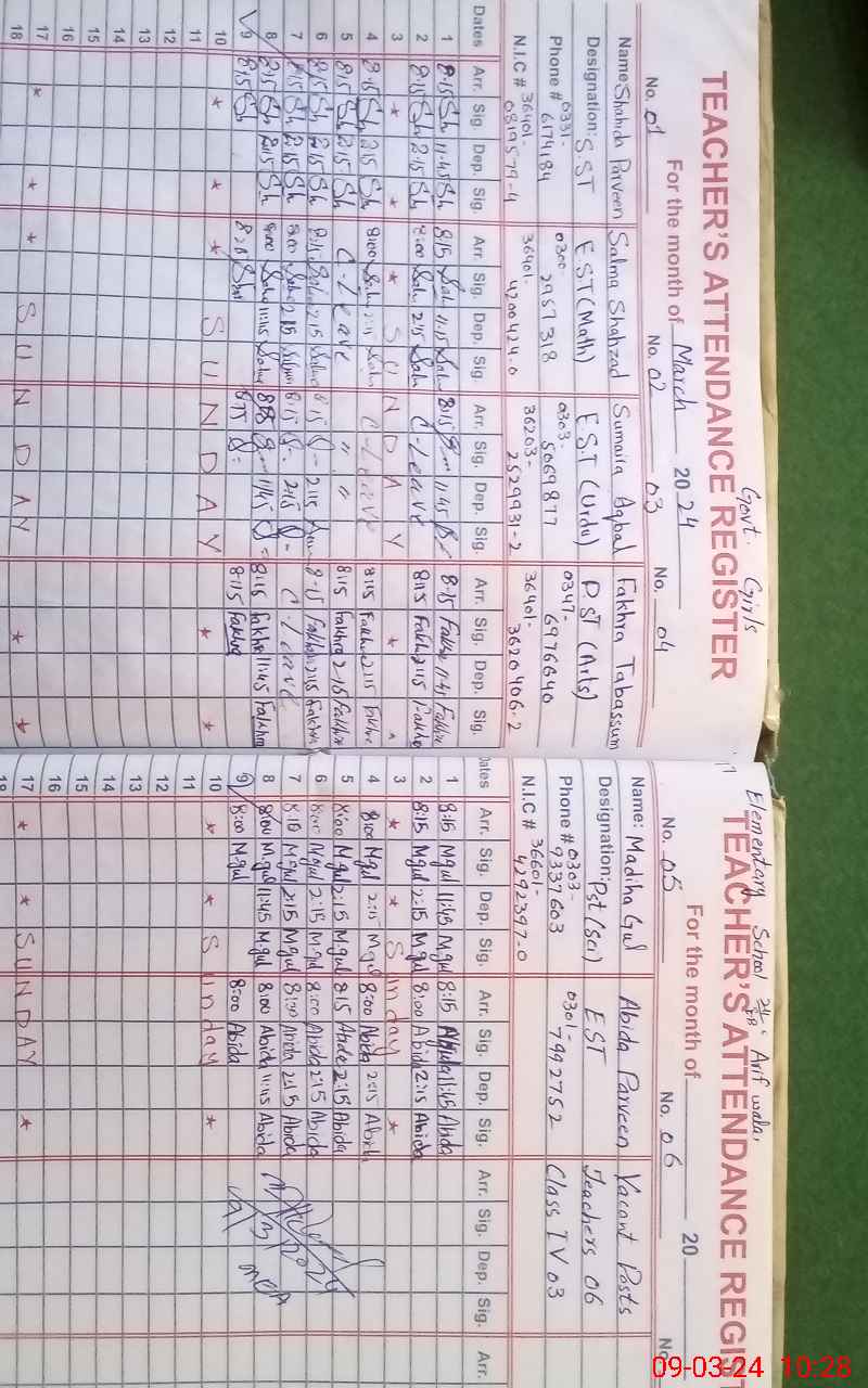 | Name: Su**** Iq**** Designation: (School Headmaster's/Headmistress's) Est G Phone/Cell Number: 03**** |