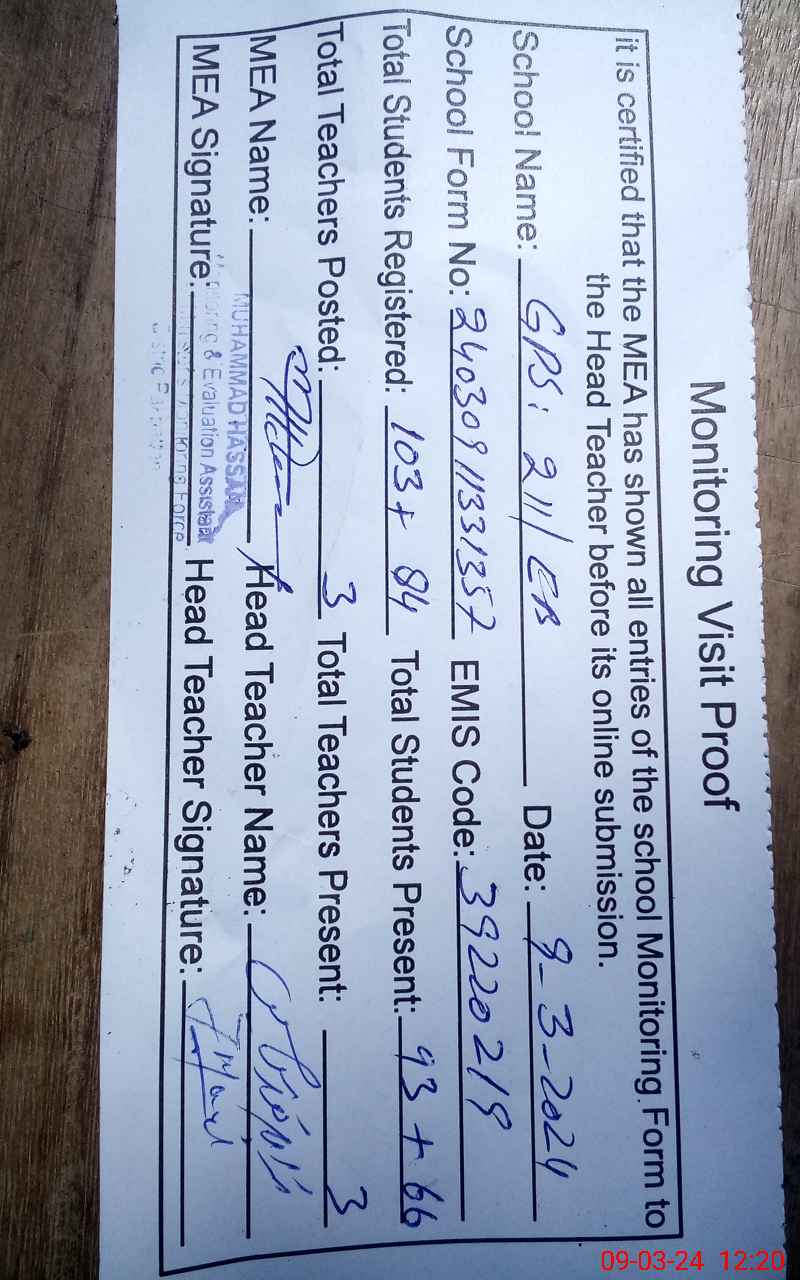 | EMIS Code: 39220219 | Name of School: GPS 211 EB | |||