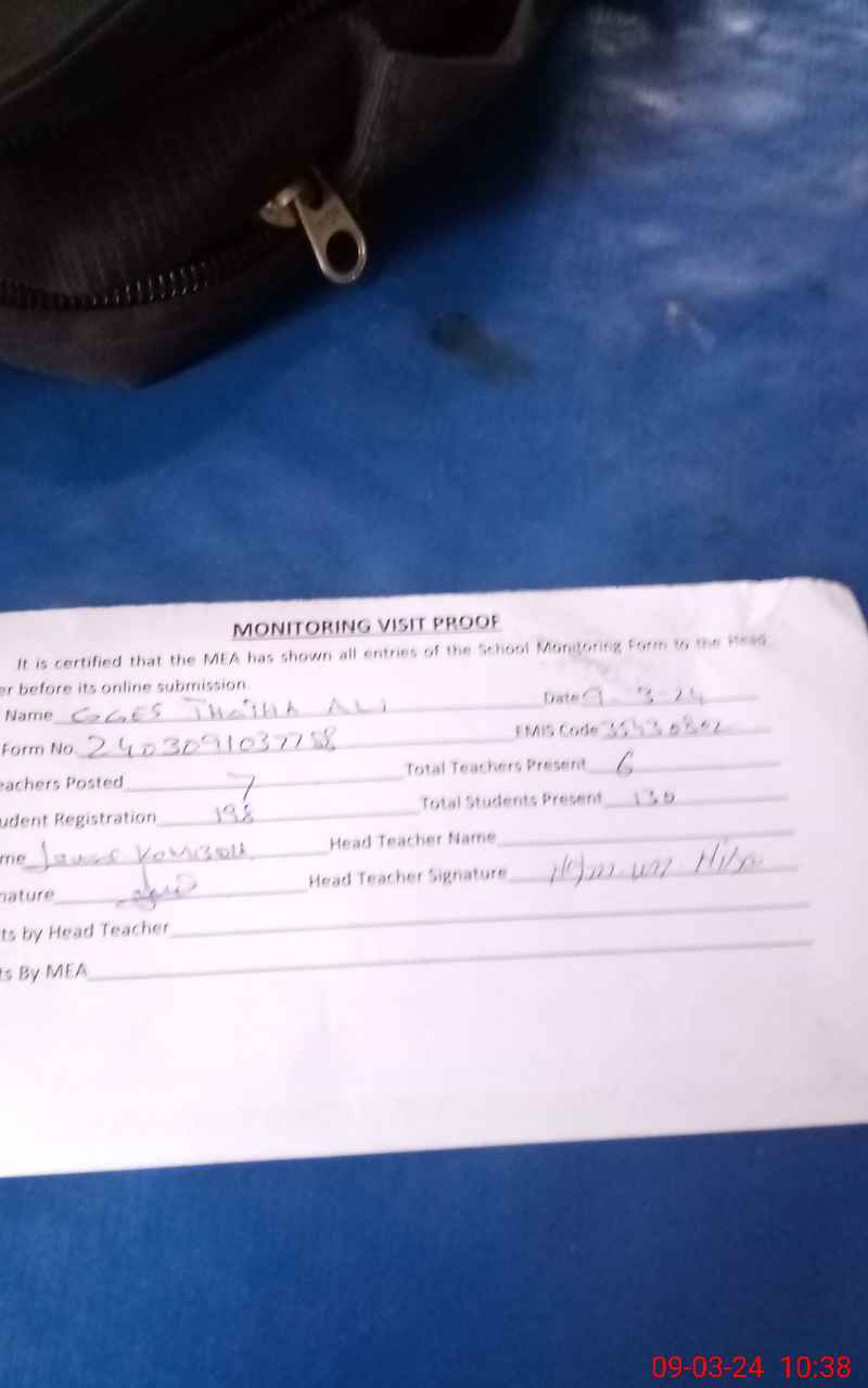 | Attendance Register | Head Teacher | MEA with School | Visit Proof |