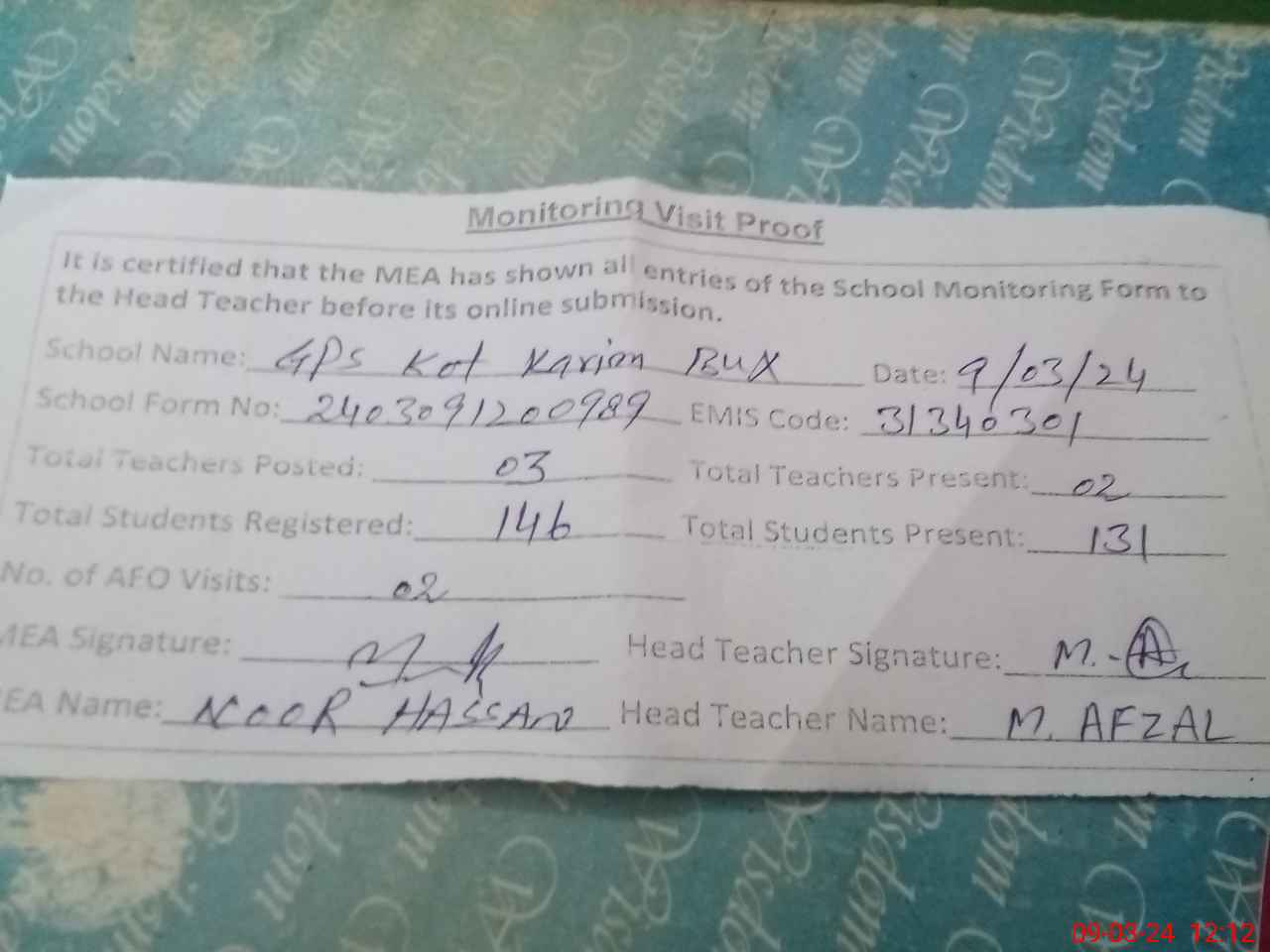 | EMIS Code: 31340301 | Name of School: GPS KOT KARIM BAKHSH | |||