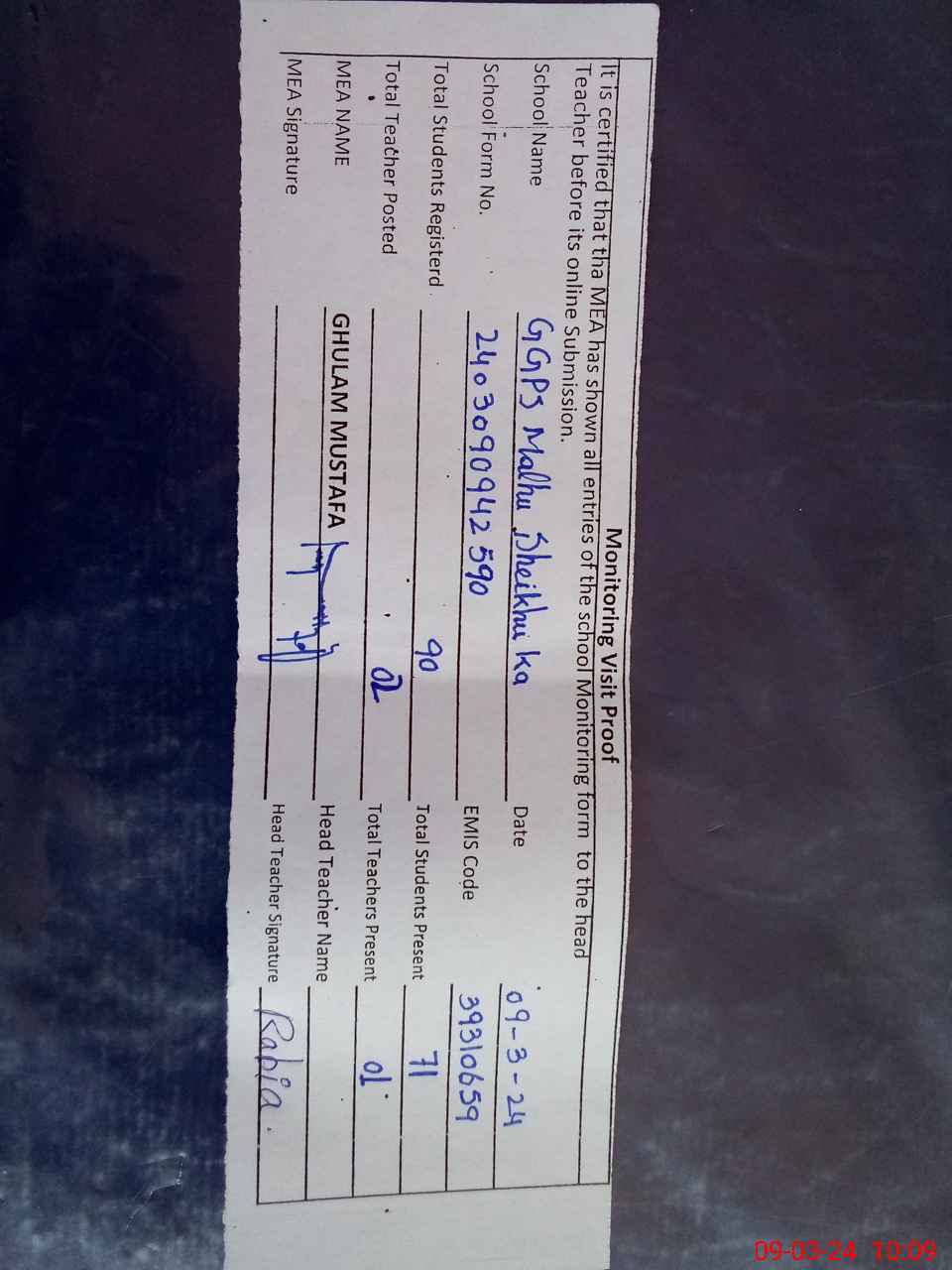 | EMIS Code: 39310659 | Name of School: GGPS MALHU SHEIKHU KA | |||