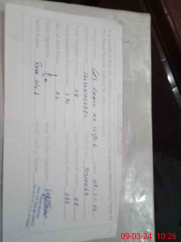 | Certified that this School was Inspected by the Undersigned MEA/DMO Today and the Information Stated Above is as Per Record. | |||||