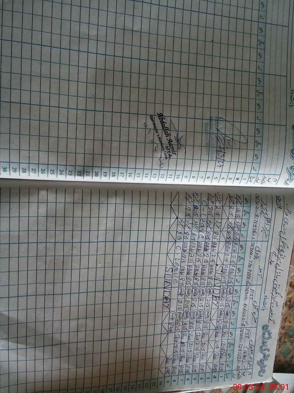 | CNIC | Full Name | Designation | R/C | Absence During Last Calender Month |
