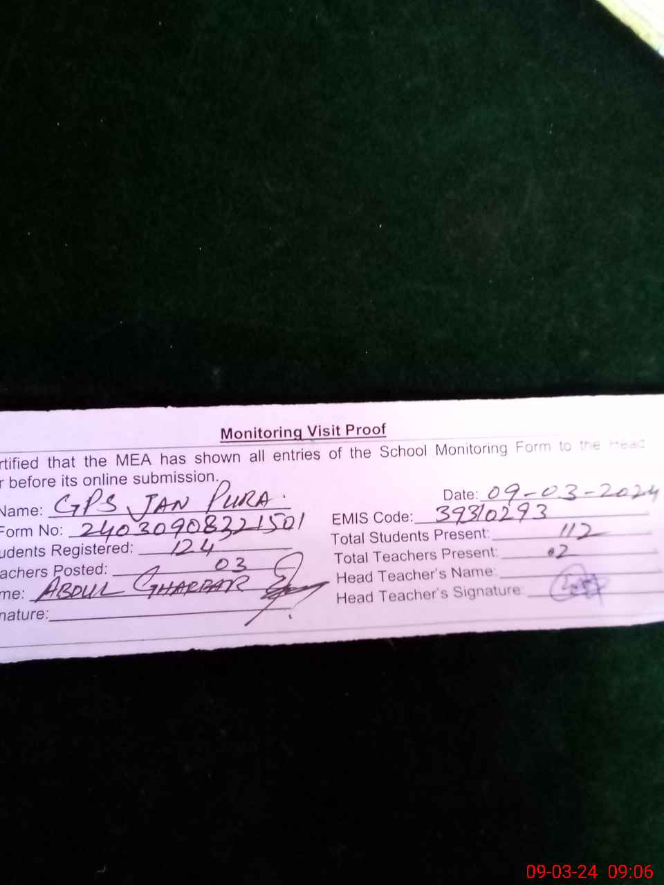 | EMIS Code: 39310293 | Name of School: GPS JAN PURA | |||