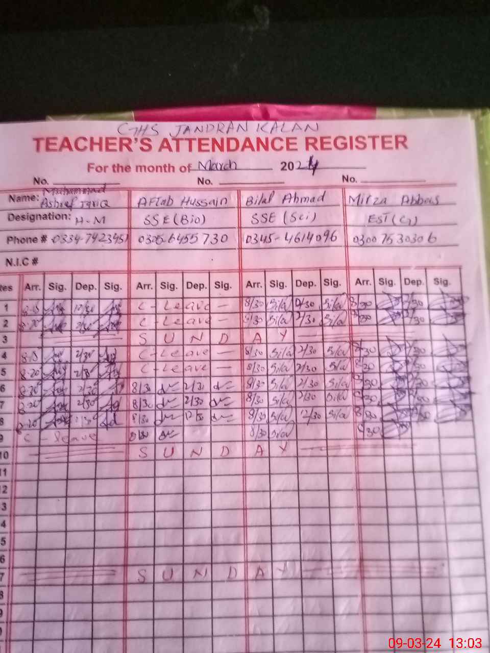 | Name: Af**** Hu**** Designation: (School Headmaster's/Headmistress's) In ChargeHead Master Phone/Cell Number: 03**** |
