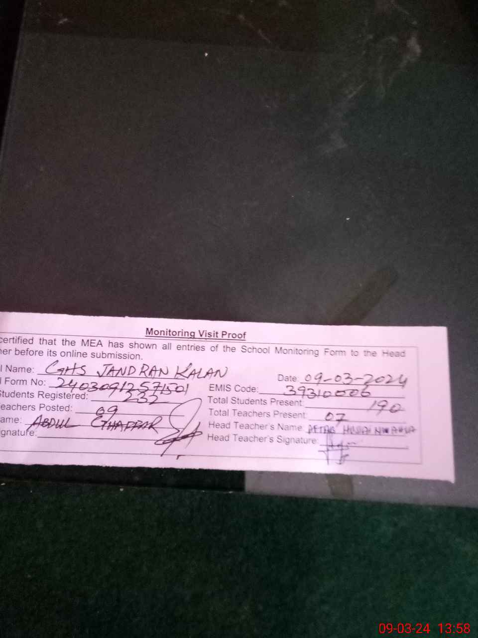| EMIS Code: 39310006 | Name of School: GHS JANDRAN KALAN | |||