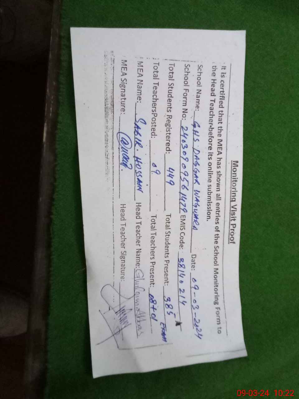 | EMIS Code: 38140214 | Name of School: GHS DAGGAR WAGWARA ANAR SHAH | |||
