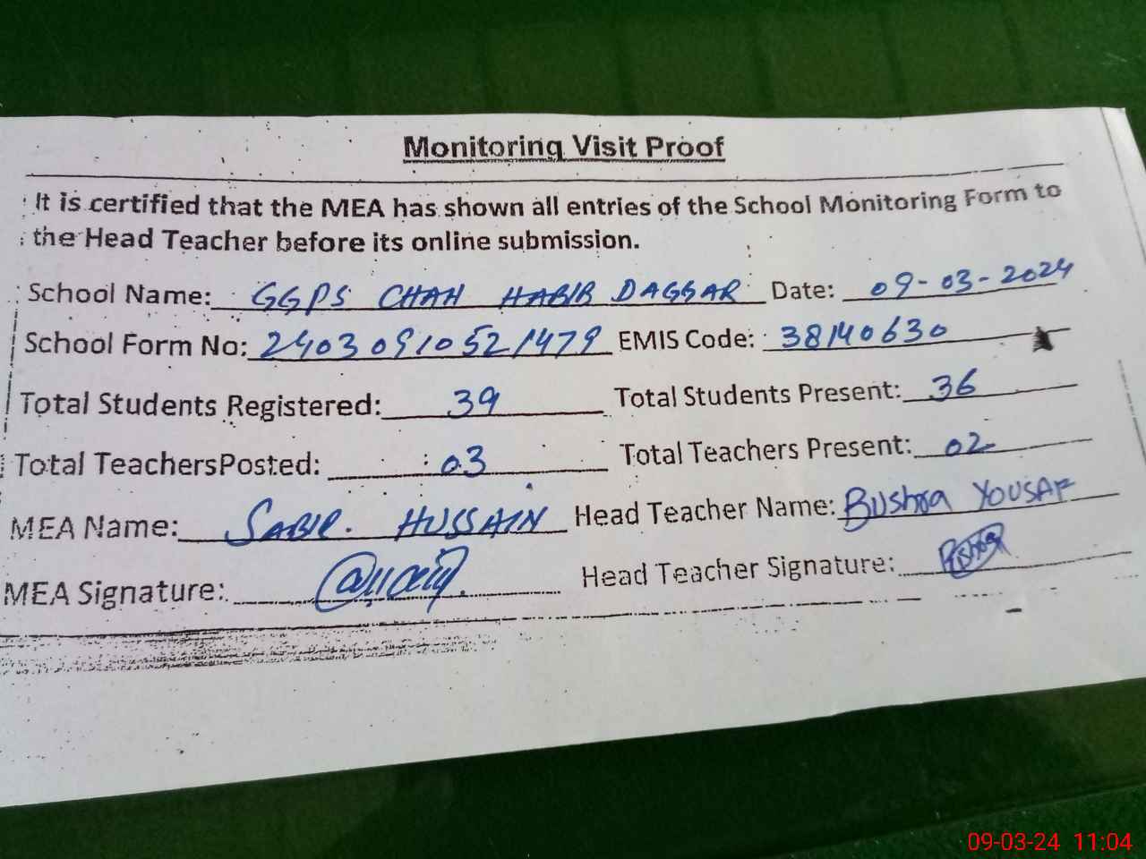 | EMIS Code: 38140630 | Name of School: GGPS CHAH HABIB DAGGAR | |||