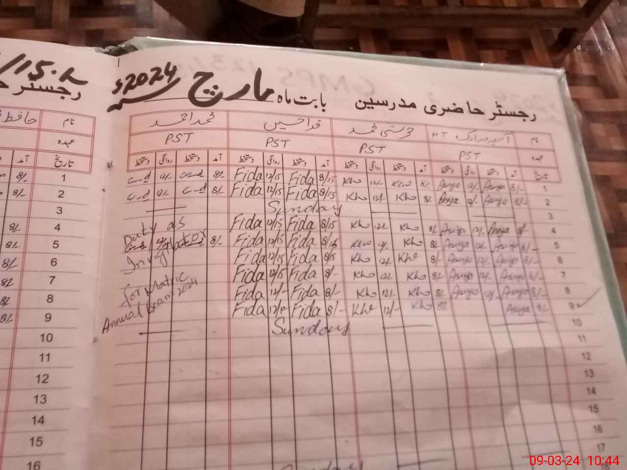 | 36**** | Mu**** Ah**** | 1 | 2 | 0 | 0 | 0 | 0 | 0 | 0 | 0 | 2 | Exam Duty | |