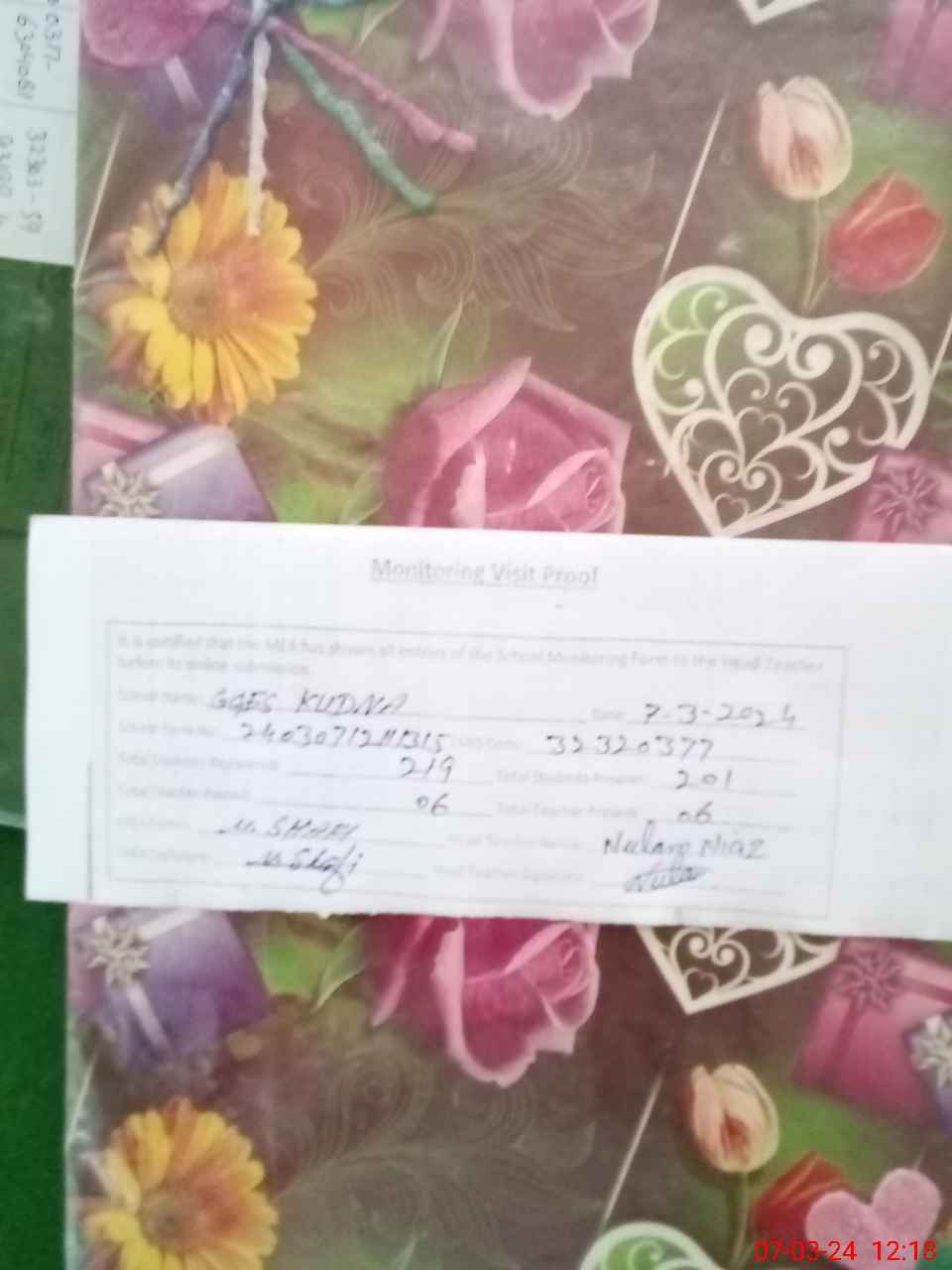 | Attendance Register | Head Teacher | MEA with School | Visit Proof |