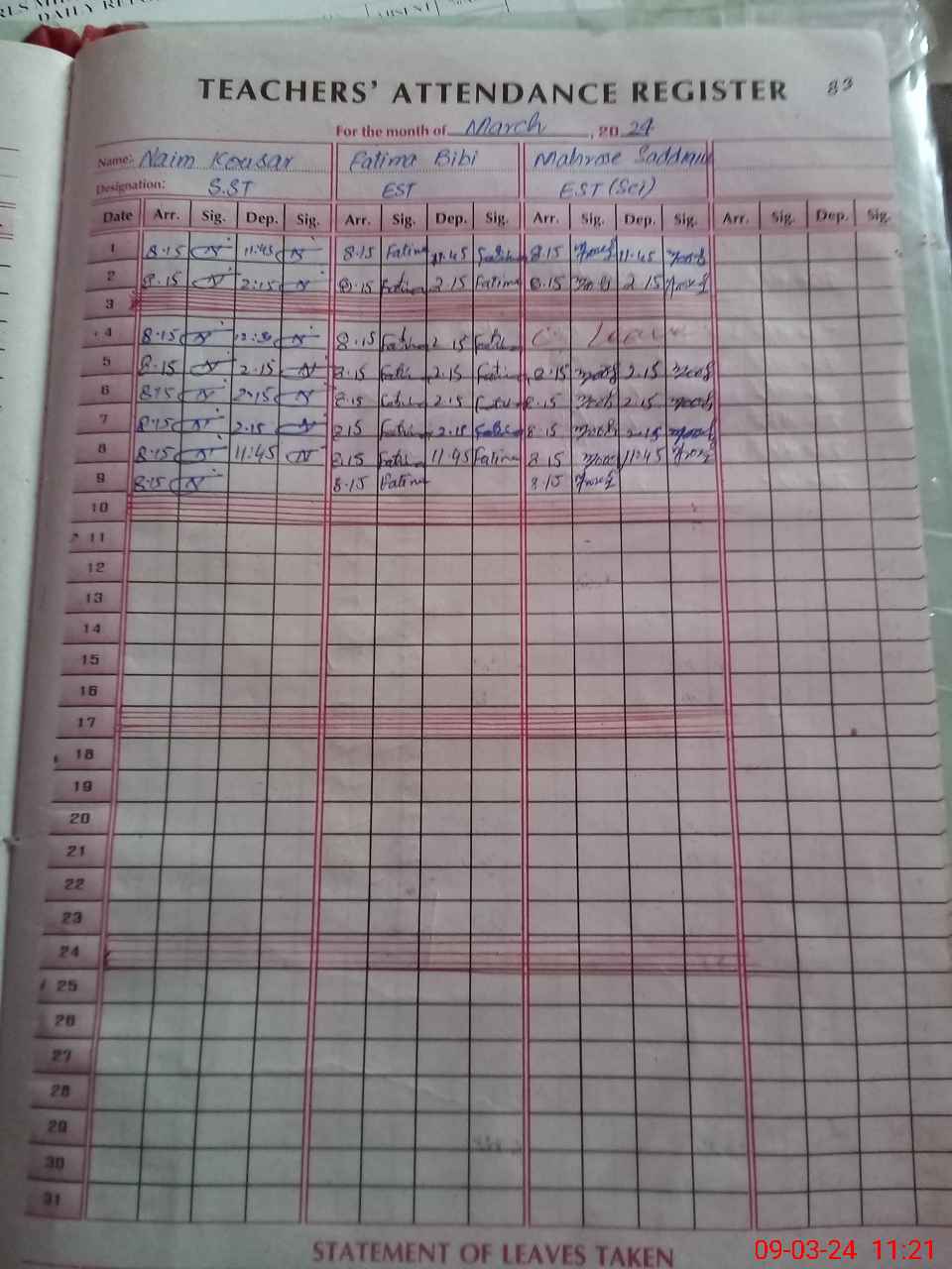 | Leave | Duty | Absent | Maternity | Medical | Ex- Pak |