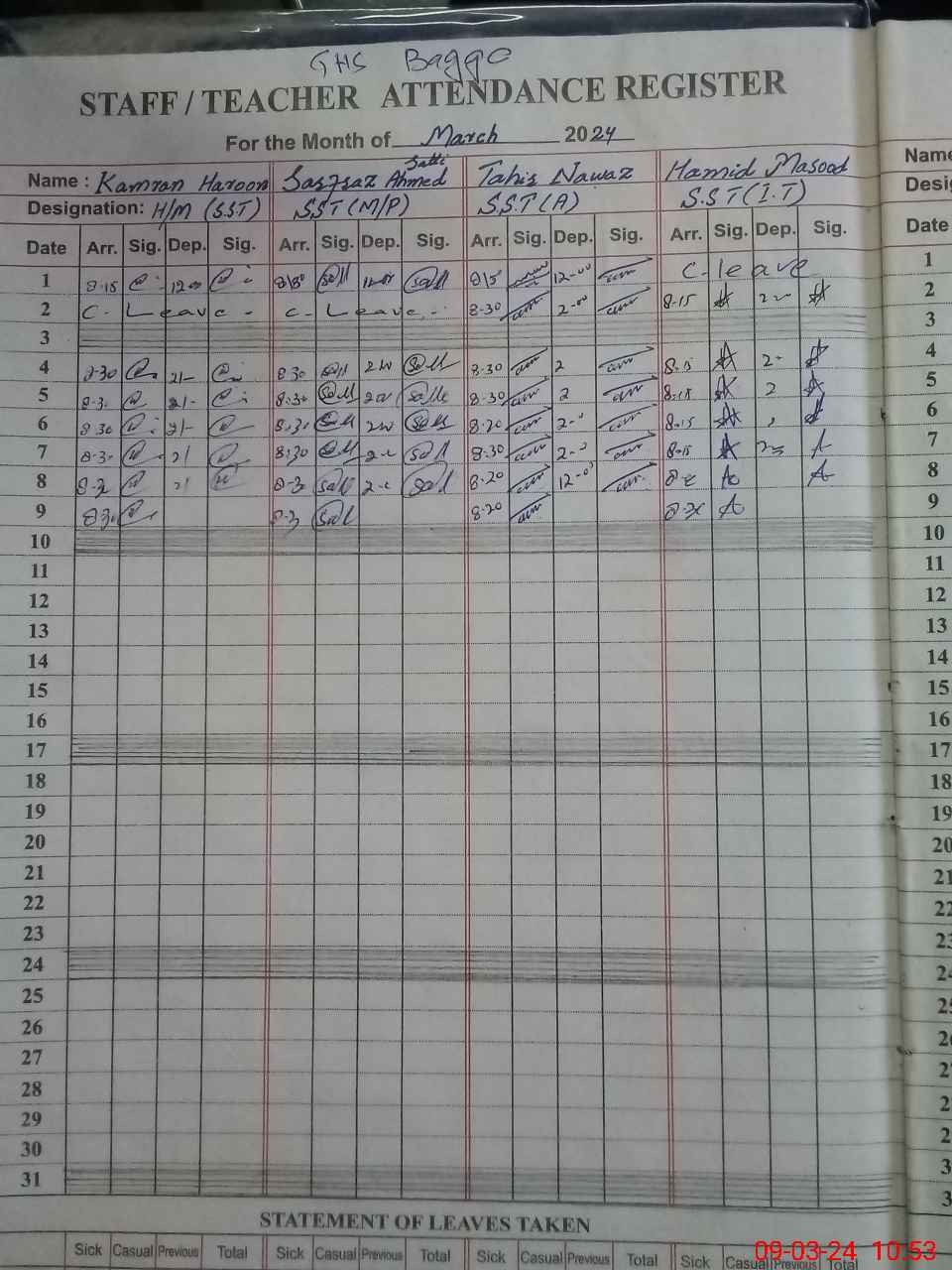 | Leave | Duty | Absent | Maternity | Medical | Ex- Pak |