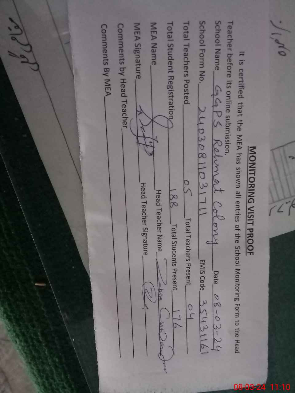 | EMIS Code: 35431161 | Name of School: GGPS MC REHMAT COLONY | |||