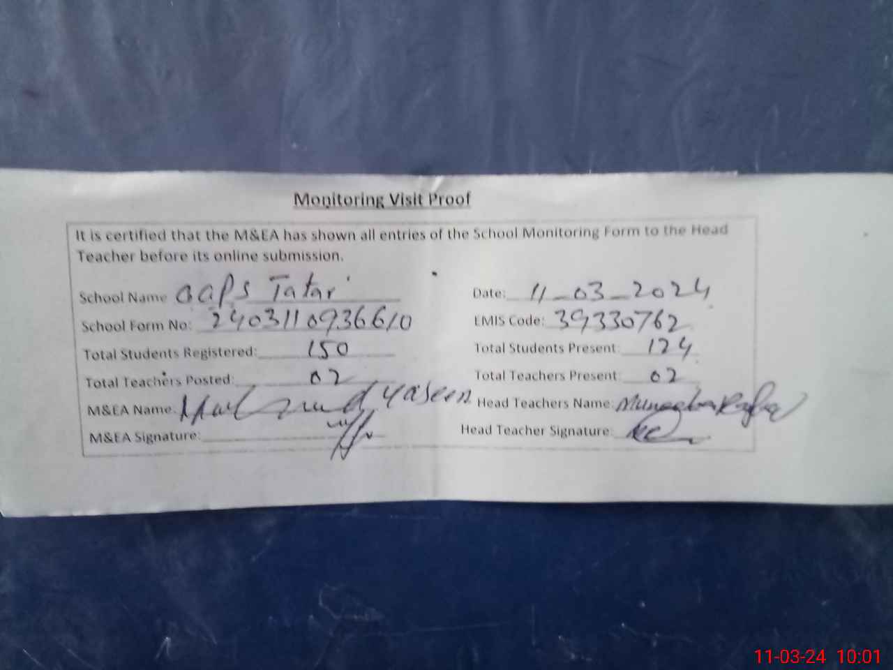 | EMIS Code: 39330762 | Name of School: GGPS TATAR | |||