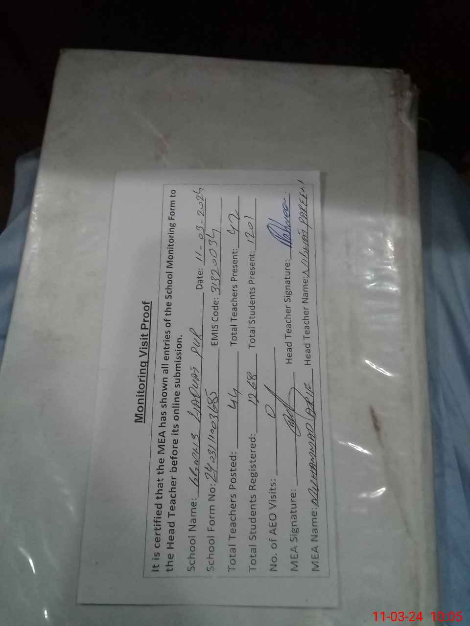 | Attendance Register | Head Teacher | MEA with School | Visit Proof |