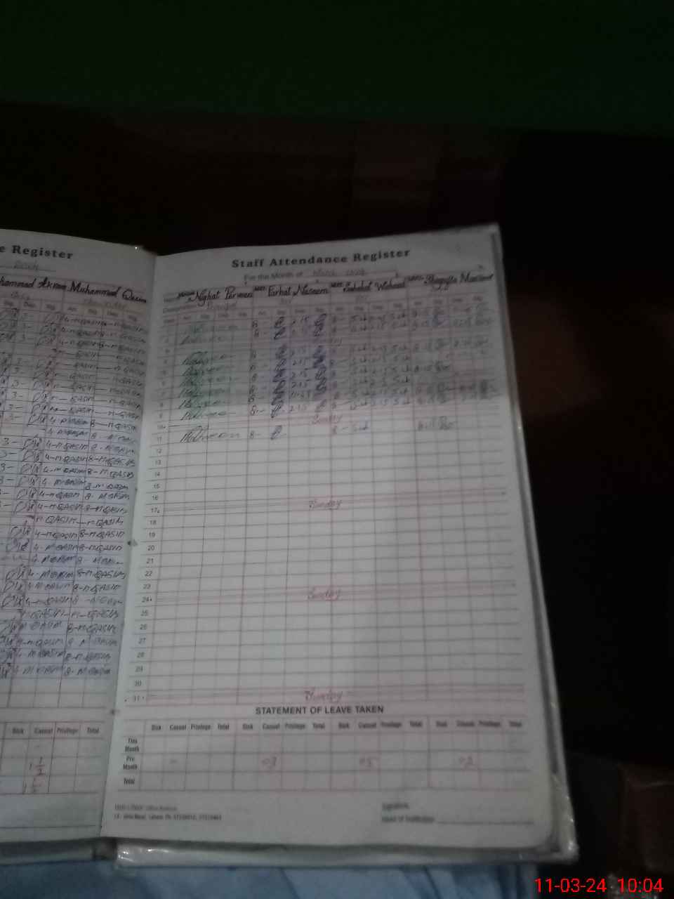 | Leave | Duty | Absent | Maternity | Medical | Ex- Pak |