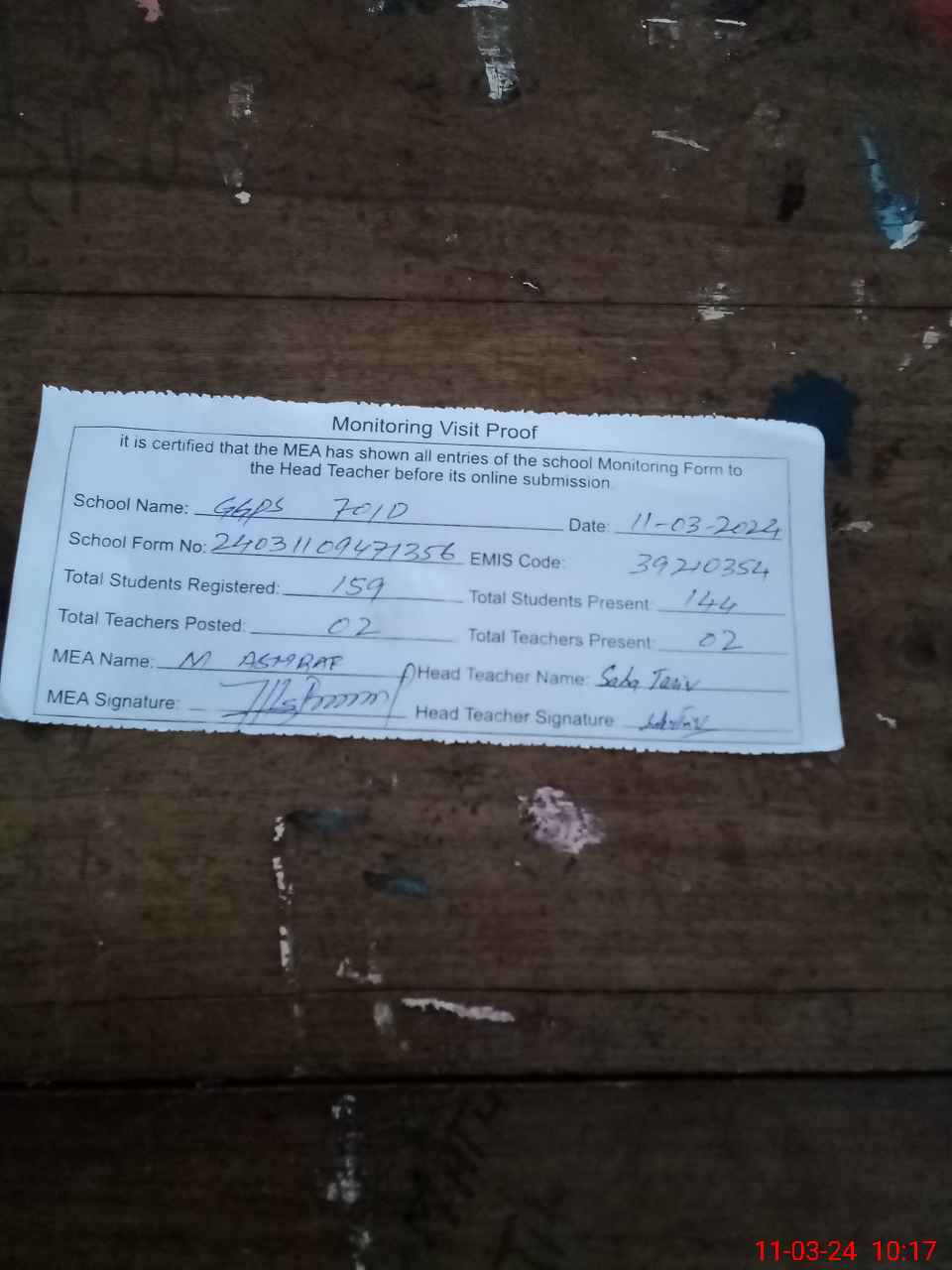 | EMIS Code: 39210354 | Name of School: GGPS 70 D | |||