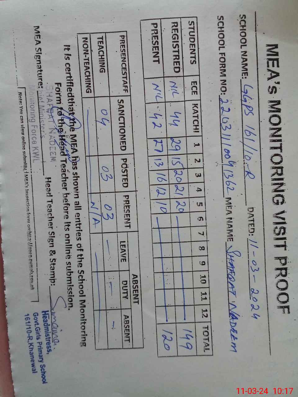 | EMIS Code: 36420379 | Name of School: GGPS 161/10-R, KHANEWAL | |||